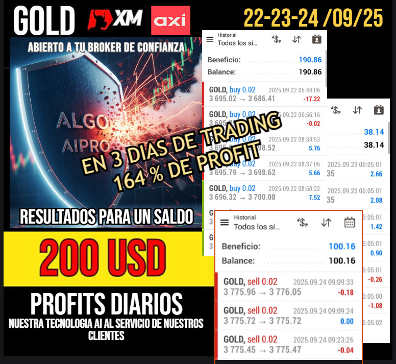 Algo AI Pro es la fusión perfecta de la experiencia humana y la precisión de la inteligencia artificial. Nuestro equipo de trading ha dedicado años al desarrollo de una estrategia única que, en lugar de operar de forma manual, se ejecuta a través de un algoritmo inteligente.